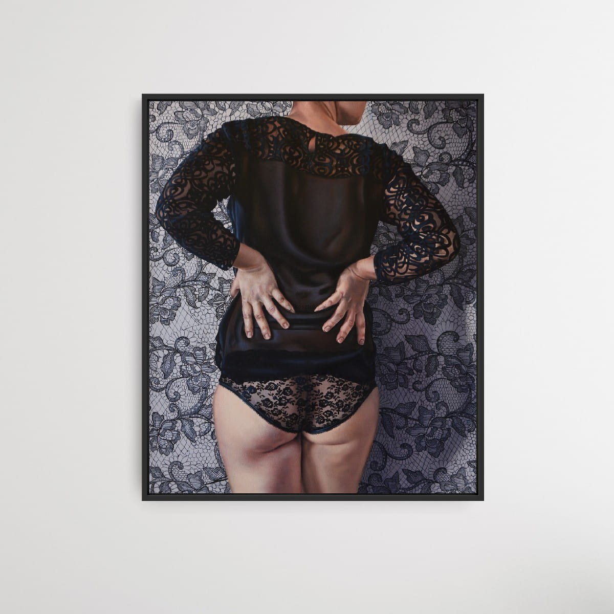 The work is sold unframed. Photos present a visualization of a framing.