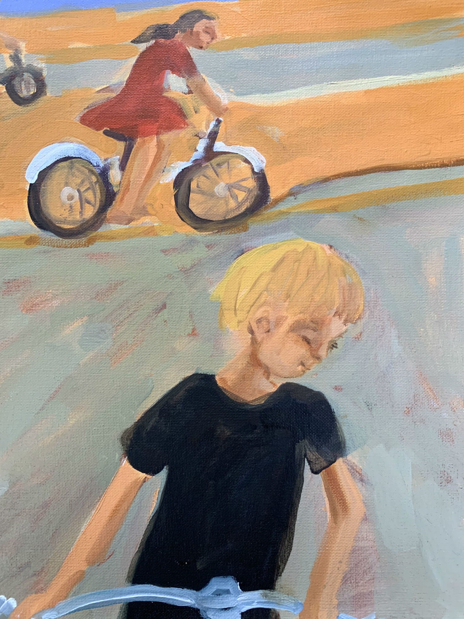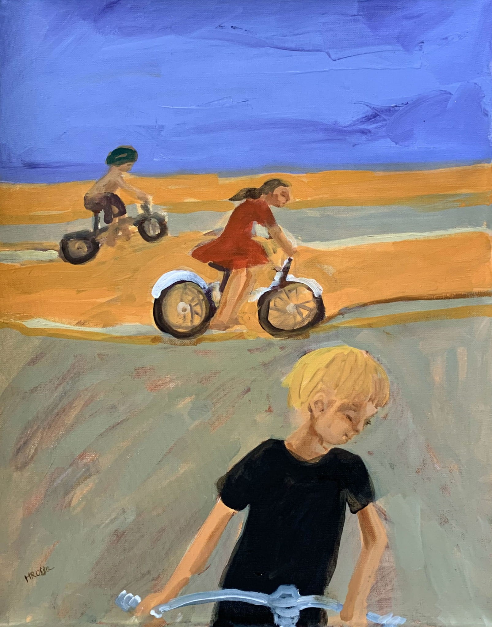 MONIKA ROSSA studied paintings at the University of Arizona, in the Ecole des Beaux Arts in Paris and at the Escuela de Diseno in Barcelona. Monika Rossa about her paintings: I always thought that it is very safe to be an artist, because I don't have to talk; everything is there, on my paintings, There is no danger of me making a verbal mistake, and people putting a weight to this “faulty”word, waiting for further explanations. I paint people, in general, although occasionally I do landscapes and even few abstractions, just to get some “fresh air “ into my mind. I paint and draw people, because I’ve always been fascinated by the way people are.. The way they think. The way they look. The way they act. What happens in their minds. How they interact with other people, or nature. How happy they can be. How lonely they are, very often, even surrounded by a crowd. In order to have freedom of painting a human being, I draw regularly from a nude model. I think that it is essential for the artist to know how to draw, especially a human figure, because it is the most complex thing that one can draw. If I “cheat” on my fine pencil study, on the bones or flesh, everybody can see that; The lies are visible. The discipline that comes from using difficult drawing tools gives me the freedom of expression on canvas. I grew up in a polish family in Warsaw, Poland, under a still communist government, Many years ago I thought, that it mattered, where I grew up. Now, I don't. My childhood only gives me extra perspective. I lived in many countries, I had to learn many languages. This only reinforced my thinking, that we all share the same feelings. We all have the same unanswered questions about our destiny, here and beyond.
