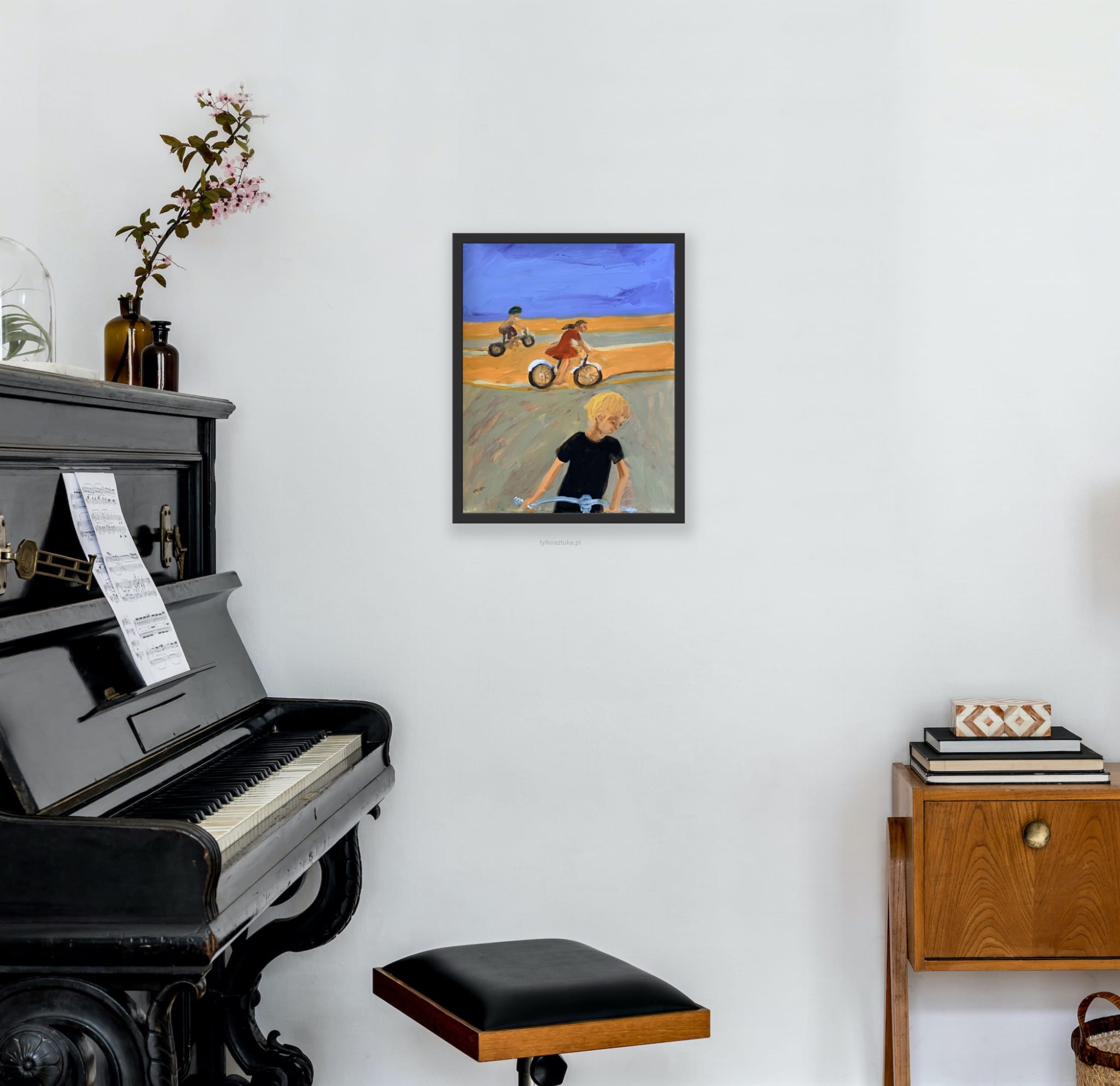 The work is sold unframed. Photos present a visualization of a framing.
